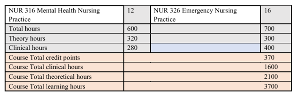 In this Diploma of General Nursing students will complete 2100 theoretical and 1600 clinical practice hours of study, that is, a combined total of 3700 learning hours. Ten (10) learning hours is equivalent to one (1) credit point.