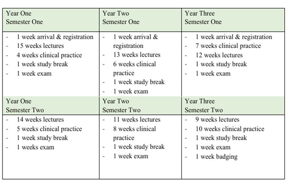 The course is completed over six semesters of study. Students must complete both theoretical learning and clinical practice experience. Course completion requires a minimum pass grade in each of the theoretical units undertaken and satisfactory completion of each of the clinical practice units.